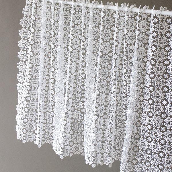 カフェカーテン オールレース60 60cm丈 レース 目隠し おしゃれ キッチン トイレ 洗面所 インテリア 白 カーテン 小窓 出窓 かわいい ナチュラル 北欧 シンプル 小窓用カーテン 出窓用カーテン ミニカーテン 小花柄 ギュピールレース 1 60cm